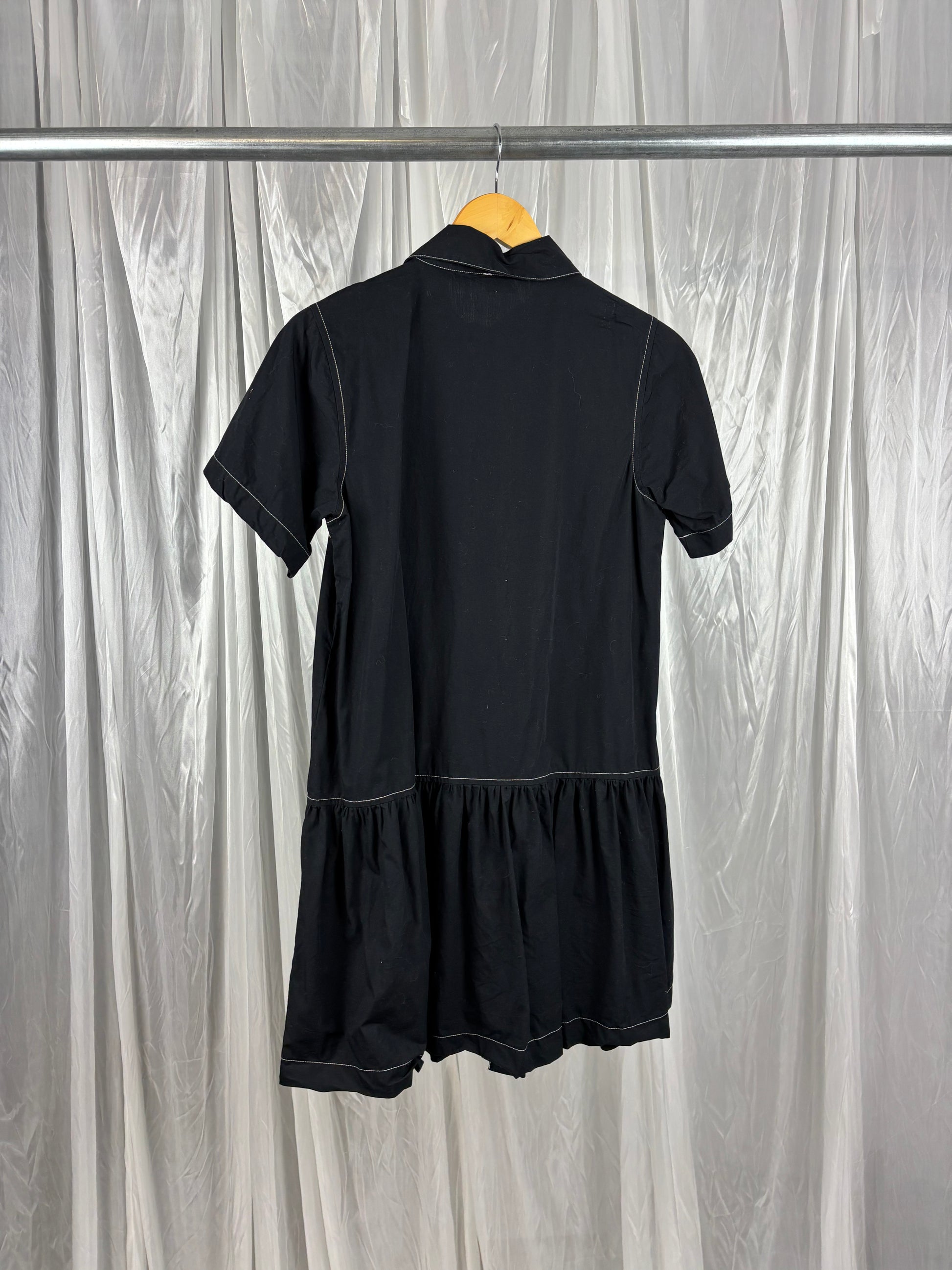 Description - Black and white stitching dress with button front, 100% recycled fabric! Good condition