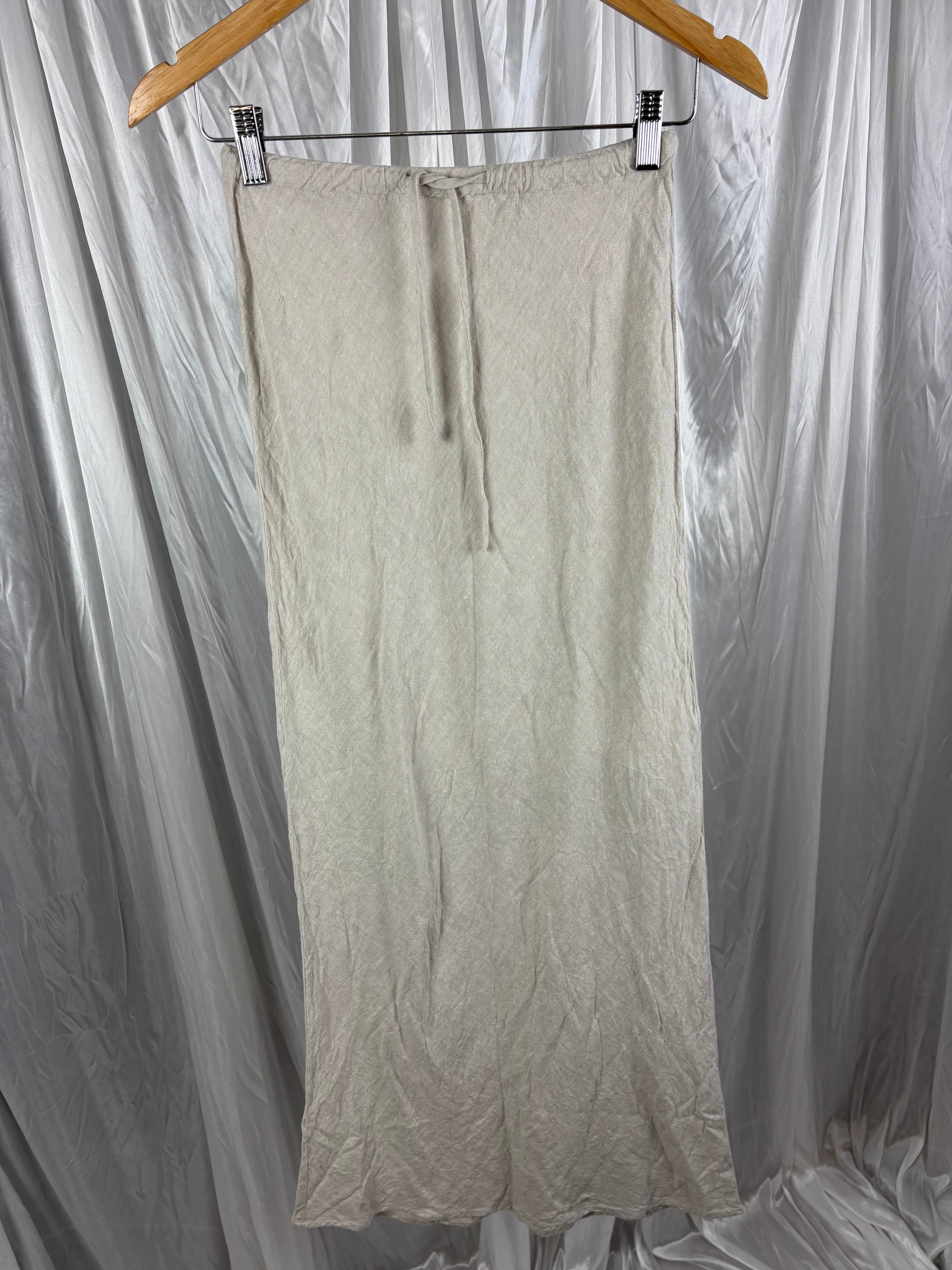 Description - Beige drawstring waist midi/maxi skirt, 55% linen, 45% viscose