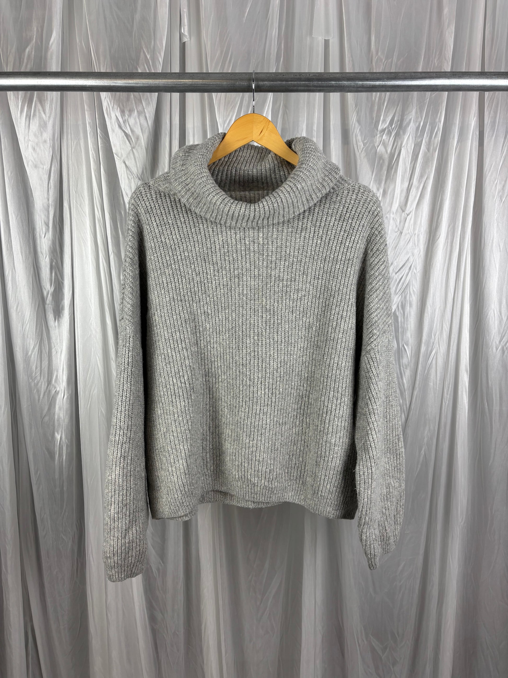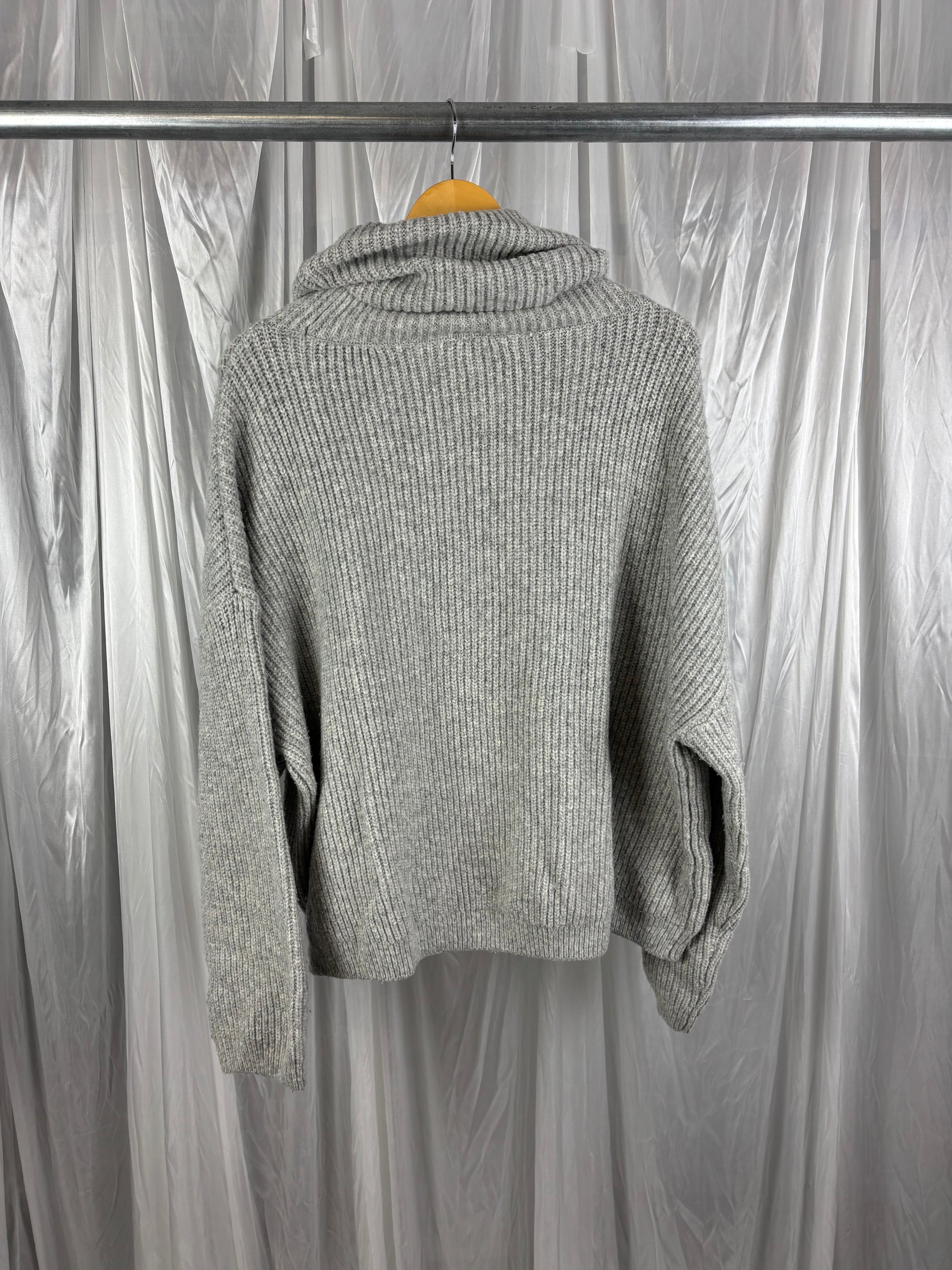 Description - Grey turtle neck knit jumper, 63% acrylic, 32% polyamide, 5% wool