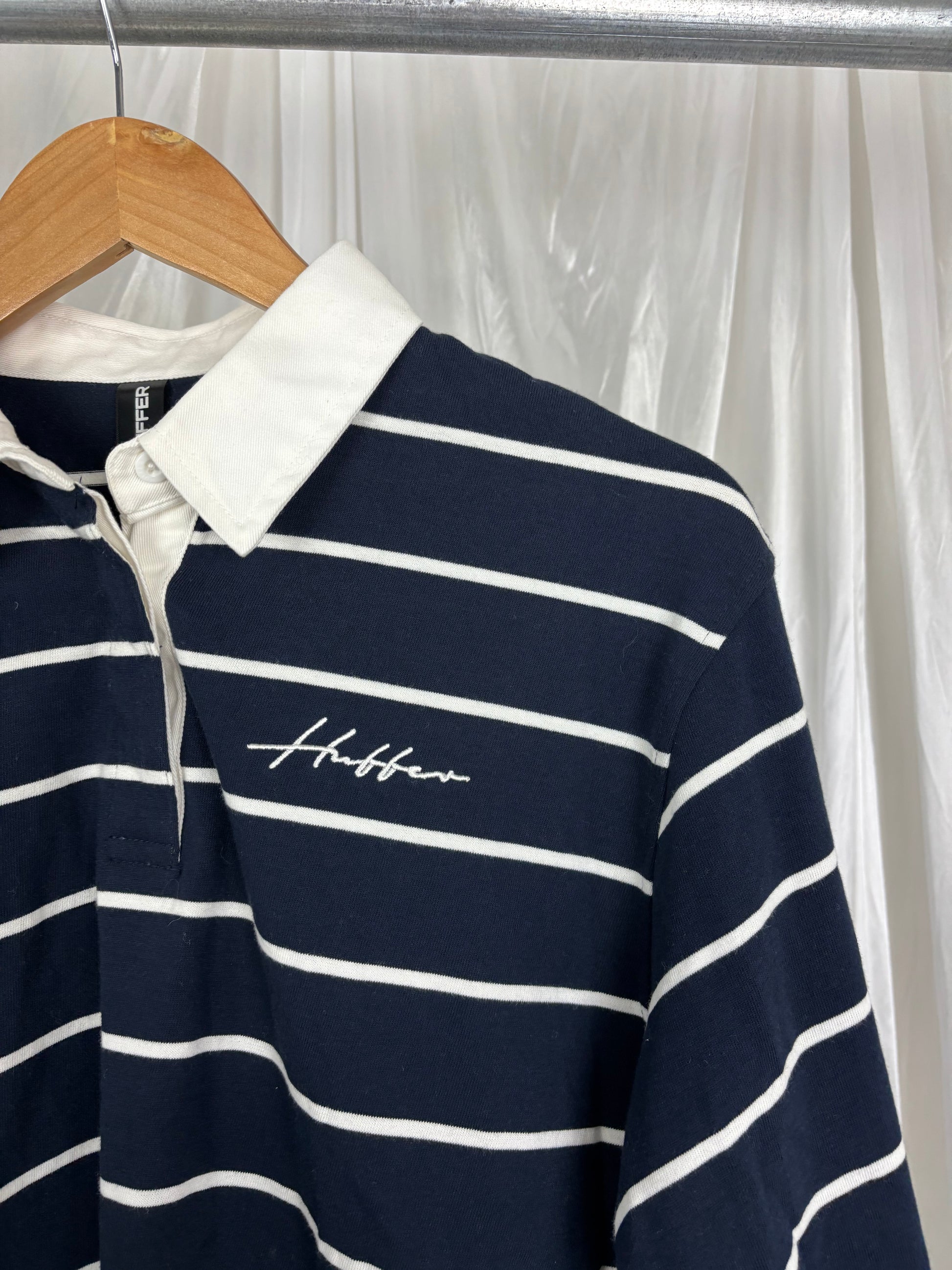 Description - Navy blue and white striped crop polo top, 100% cotton. Brand new with tags - retailed for $63!