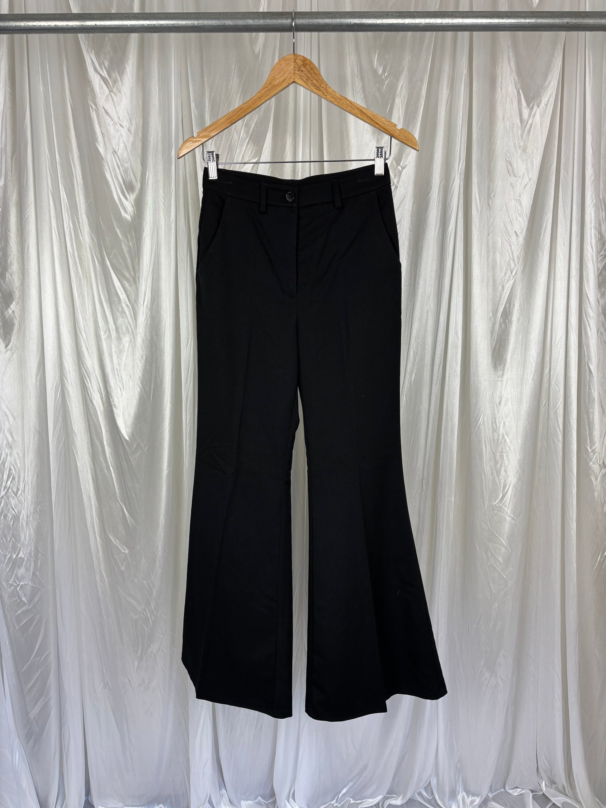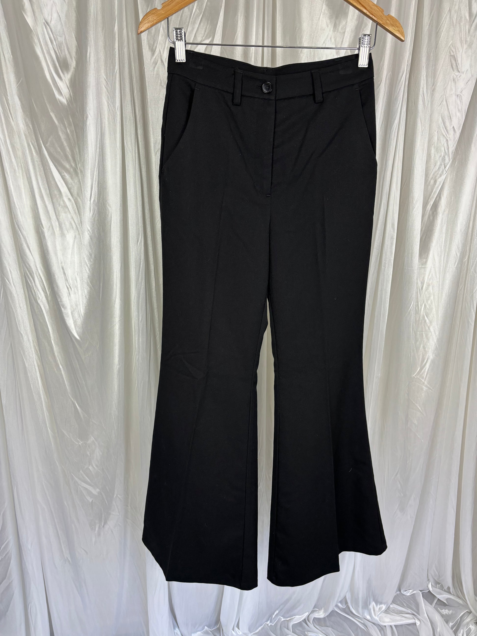 Description - Black flare bottom pants, 76% polyester, 20% viscose