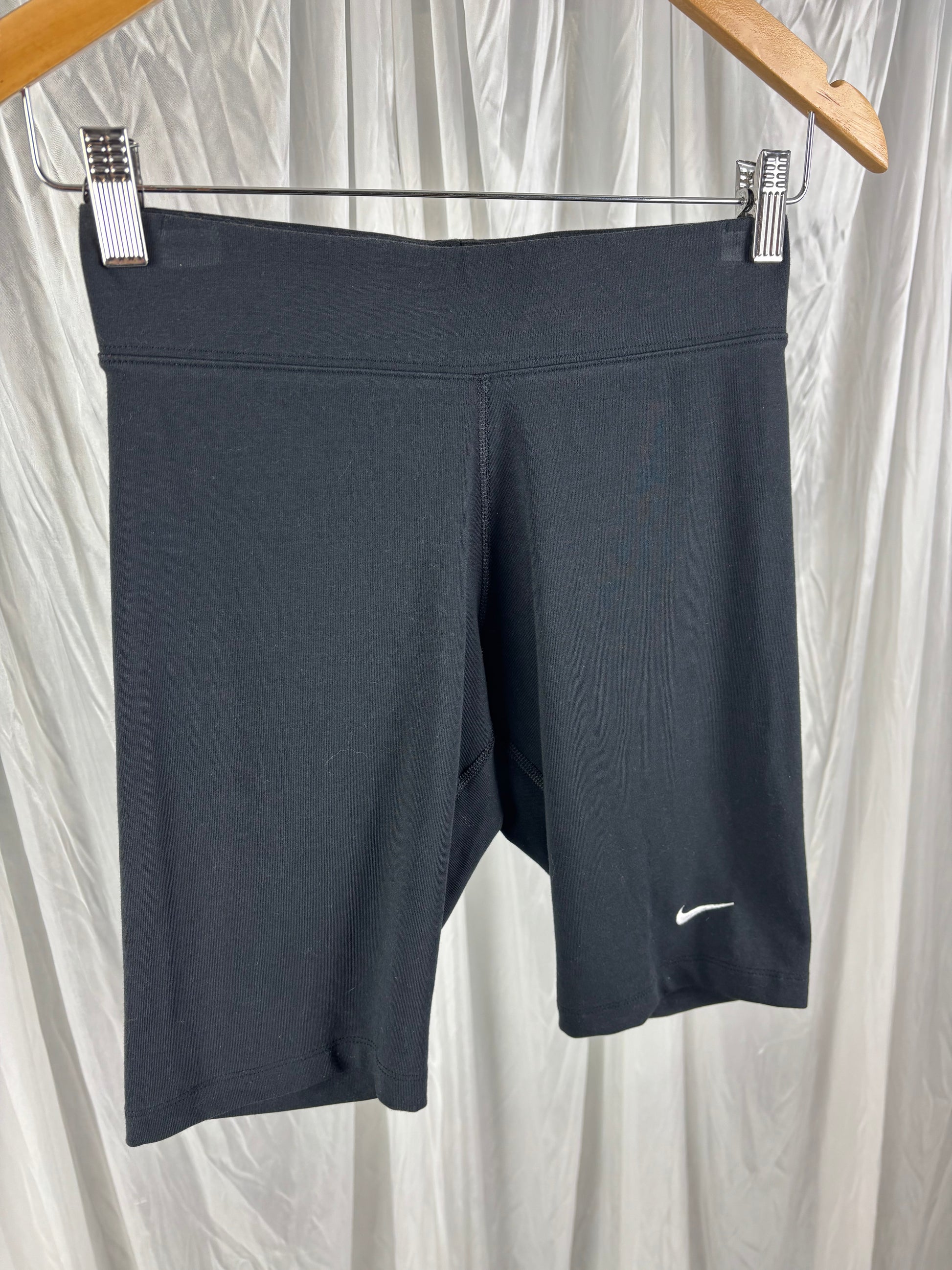 Description - Black tight shorts with an elastic waist and small nike tick. 61% cotton, 33% polyester, 6% spandex