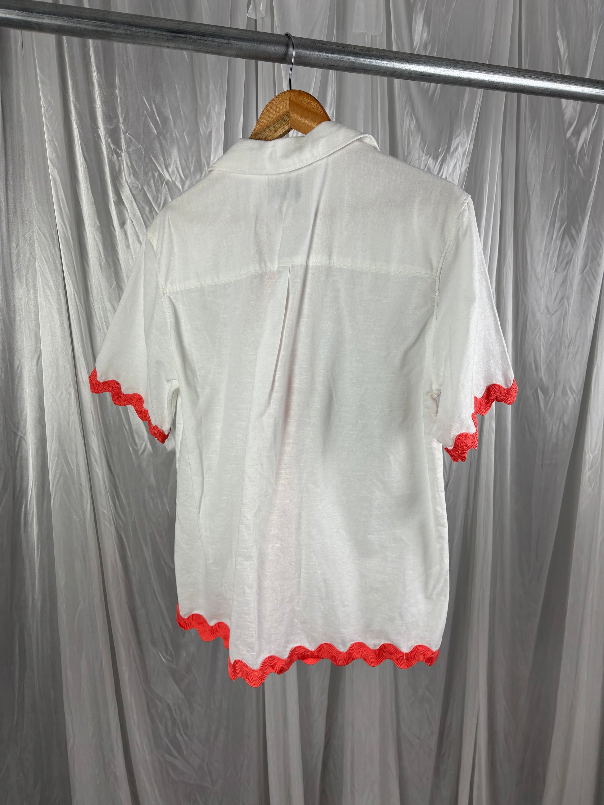 Description - White button front shirt with wave stitch detailing, 52% cotton, 48% linen