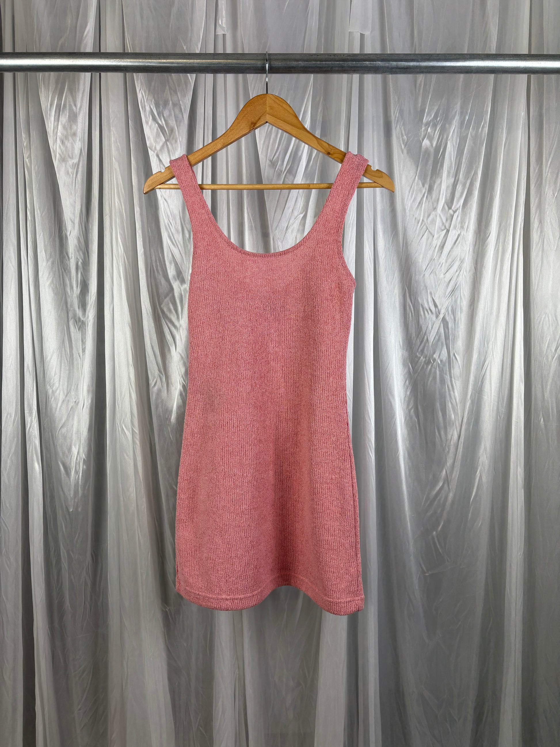 Description - Beautiful pink knit mini dress with low back, 100% polyester