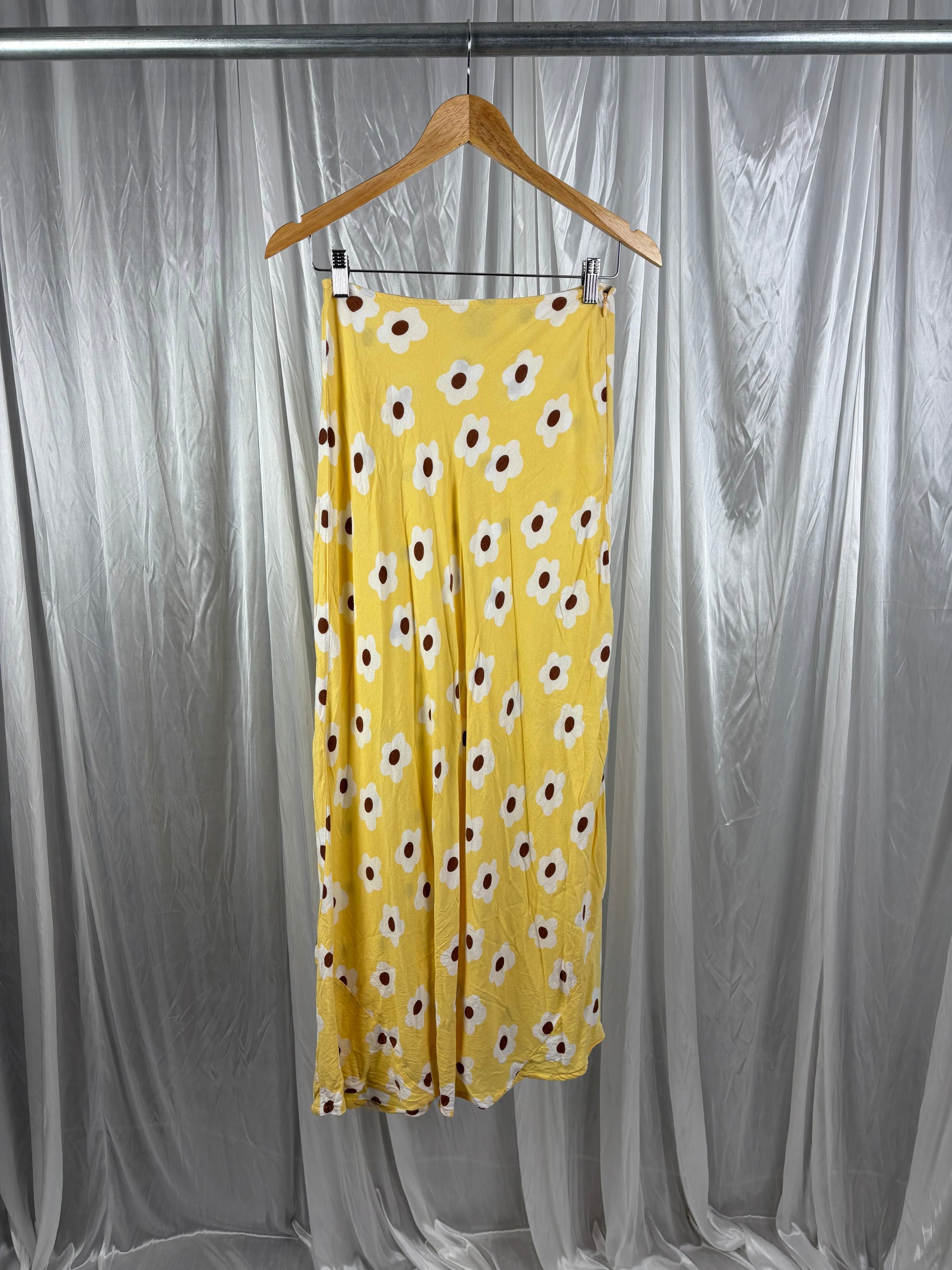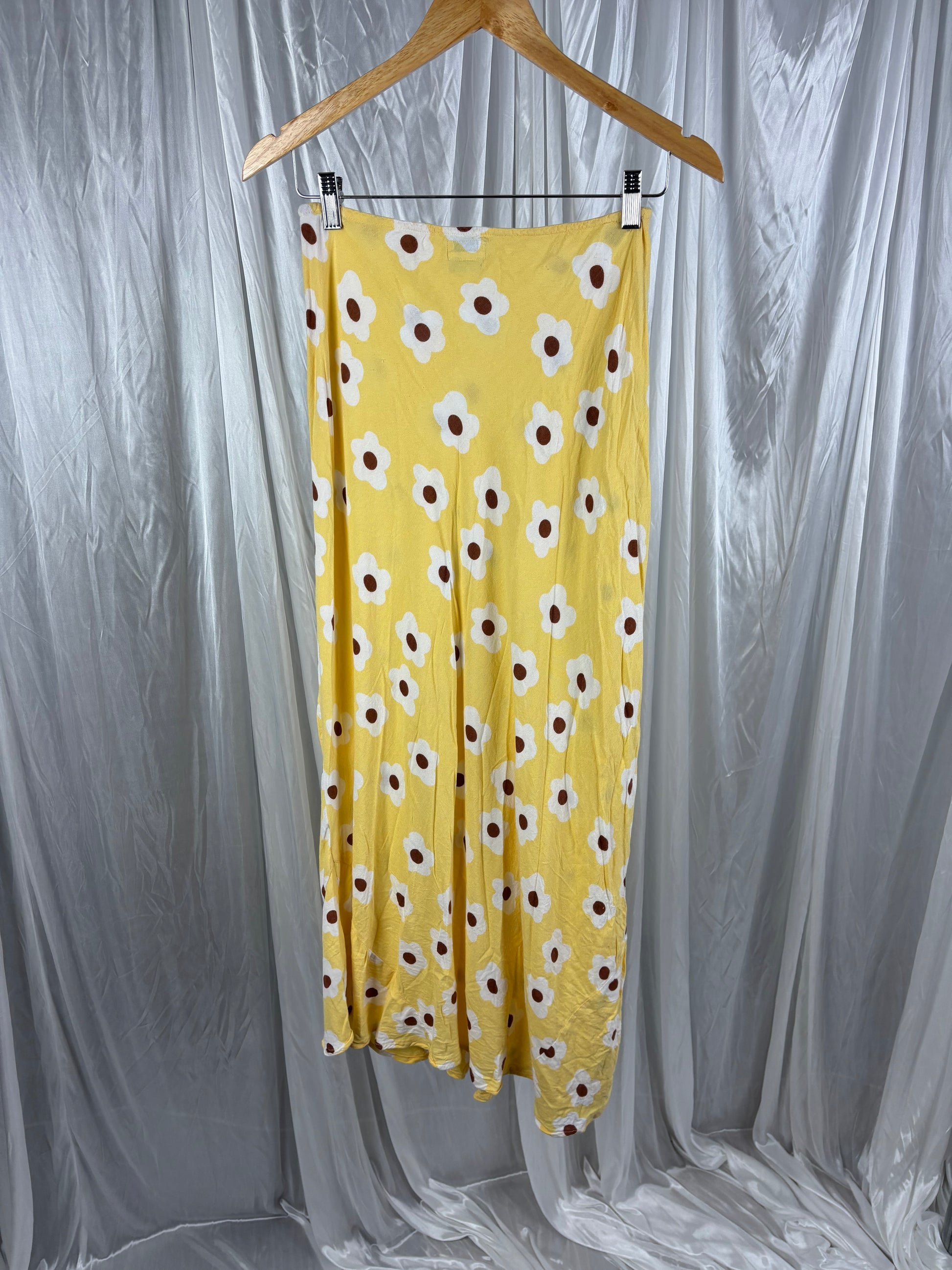 Description - Yellow floral pattern maxi skirt, light weight summer material 70% viscose, 30% linen