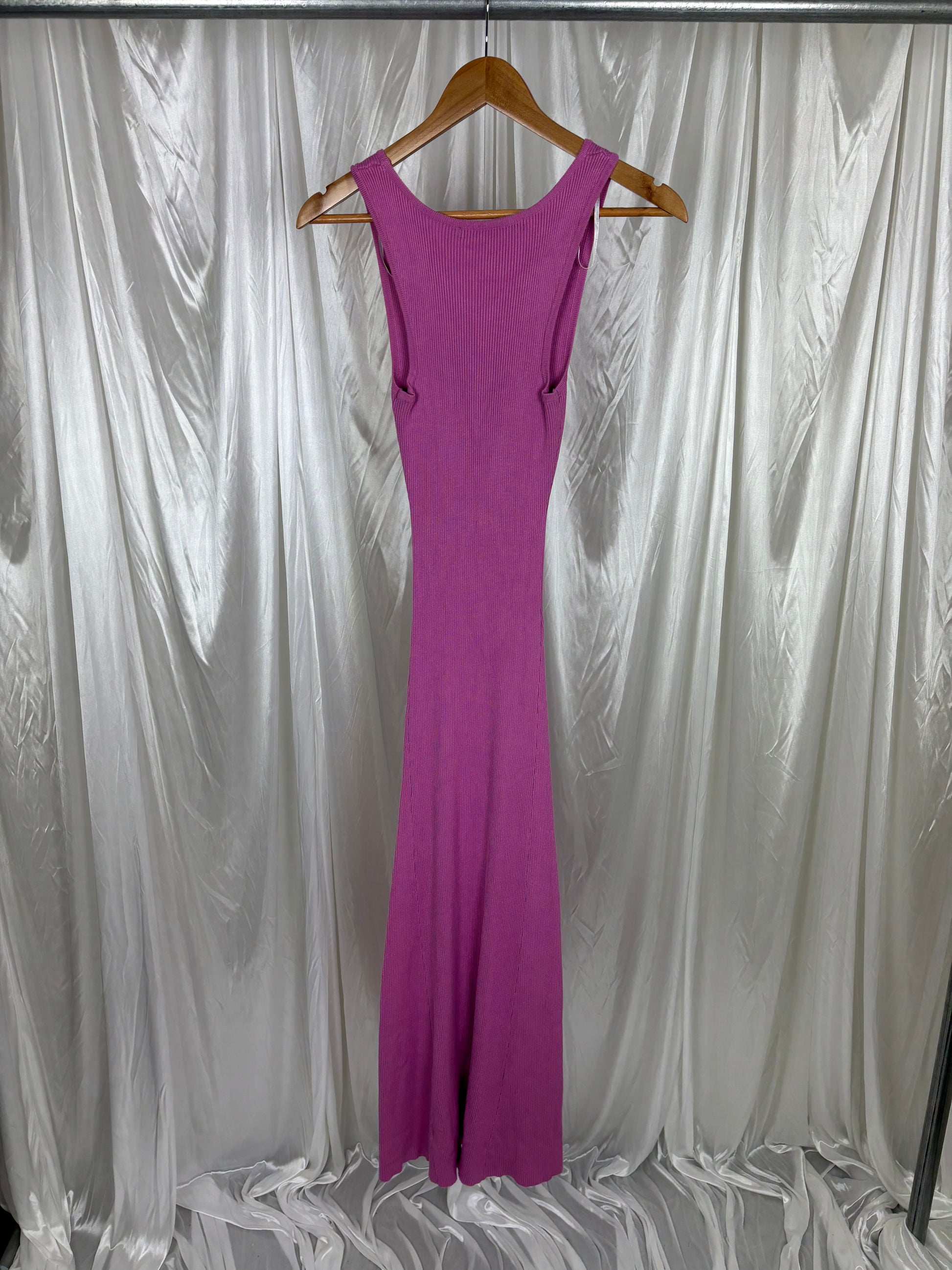 Description - Pink ribbed low neck tight dress, 80% viscose, 20% nylon