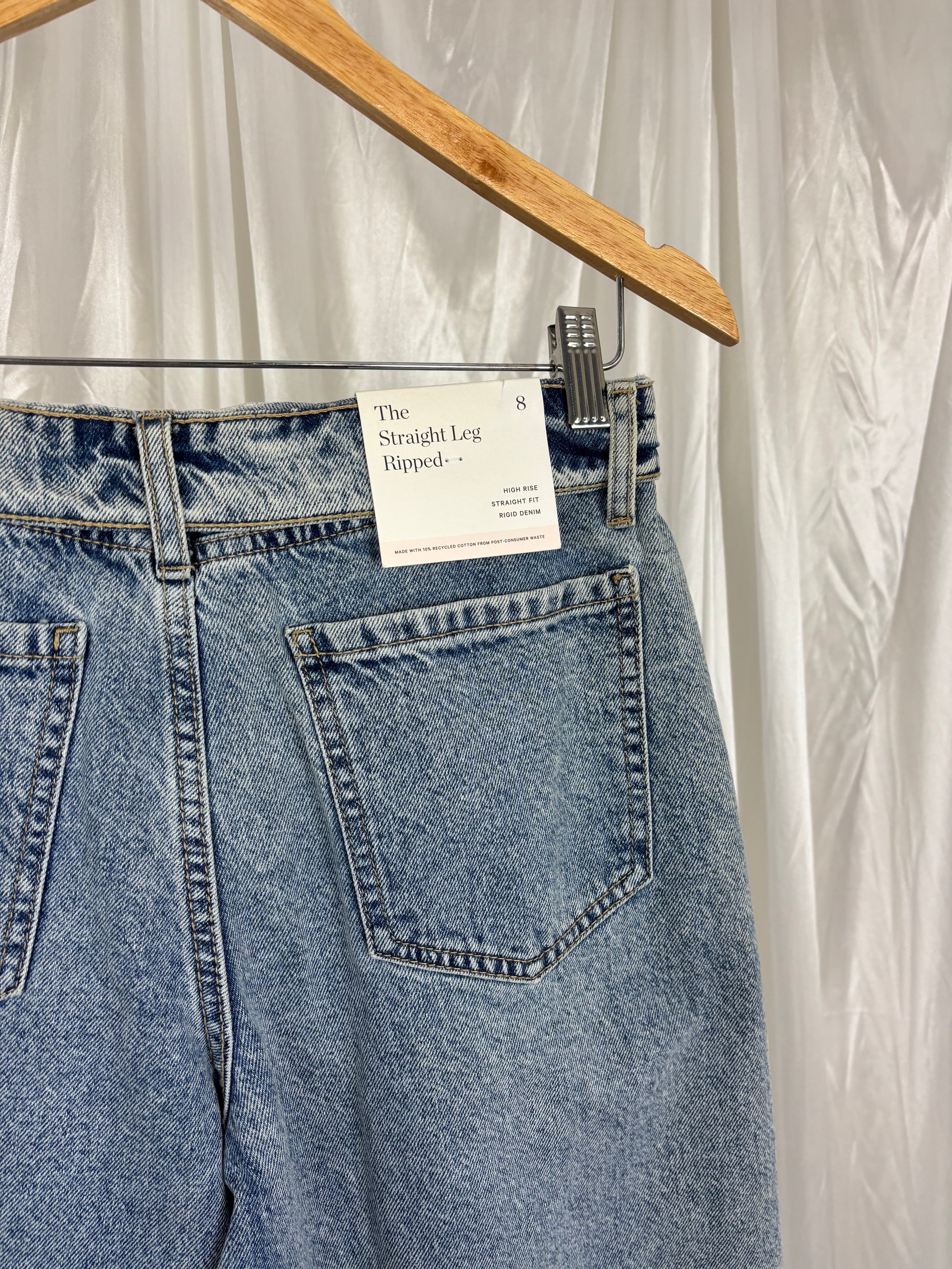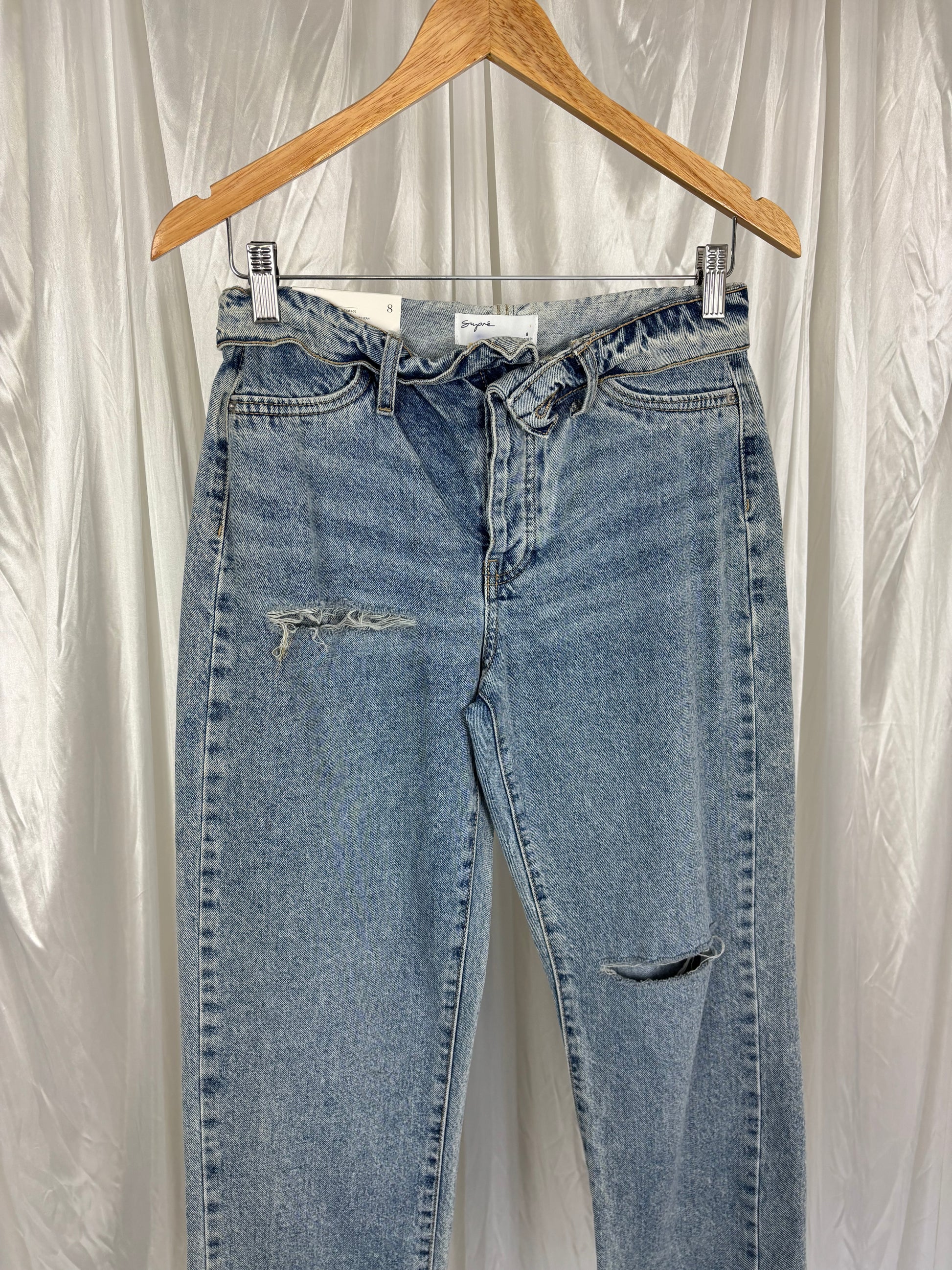 Description - Blue mid rise folded waist jeans with rips. Brand new with tags - retailed for $55!