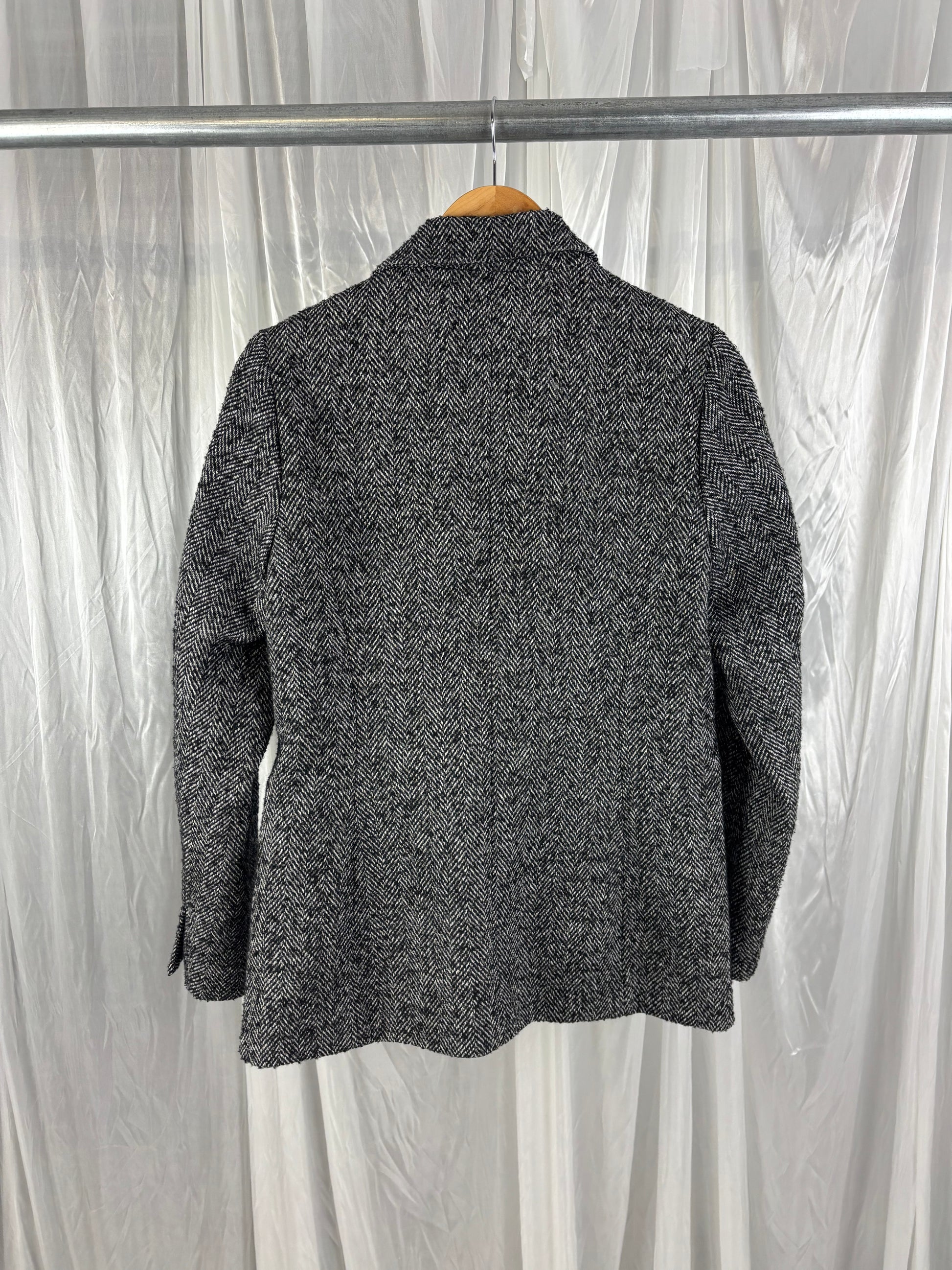 Description - Dark grey/black thick patterned blazer, 90% polyester, 10% wool